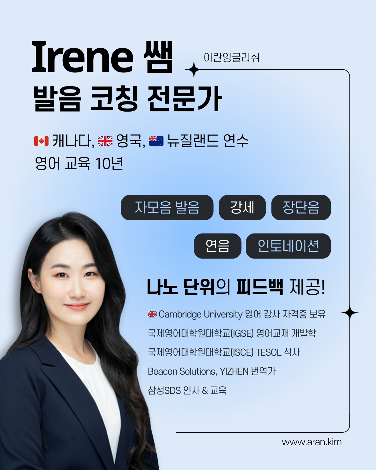 * 1:1 발음 교정은 [아란잉글리쉬 라이브 클래스 Season 7] 수강생 대상 서비스입니다.